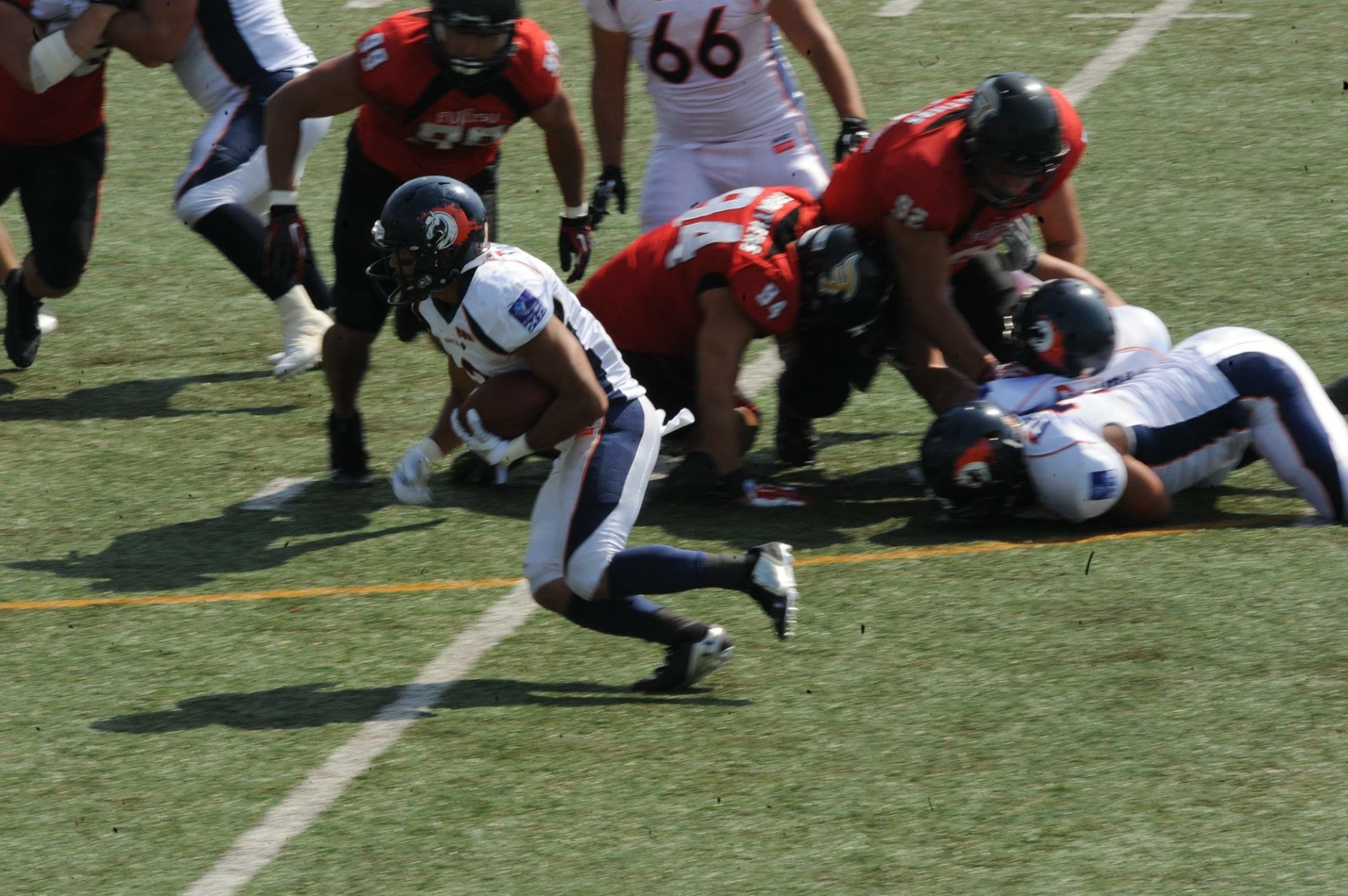 全てのプレーをタッチダウンまで。練習ならたとえタックルされて転けてしまっても知らん顔して立ち上がり(*2)エンドゾーンに向かって走る。パックされて止まってしまってコーチが笛を拭いていても気にせずエンドゾーンに向かって走る。ボールを持ったRBに与えられた仕事はたったひとつ。「タッチダウンする」事だけです。ロングゲインする事でもファーストダウンを取る事でもありません。